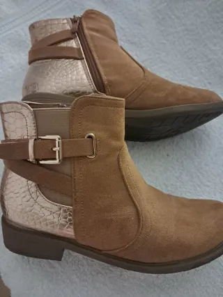Botines de tacón medio (6cm) súper cómodos. Son tipo chelsea de ante. Por el tipo de material tienen algún signo de desgaste perceptible de cerca. Marca Dorothy Perkins, los compré en Zalando. Talla 38.