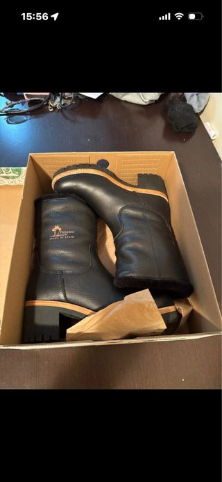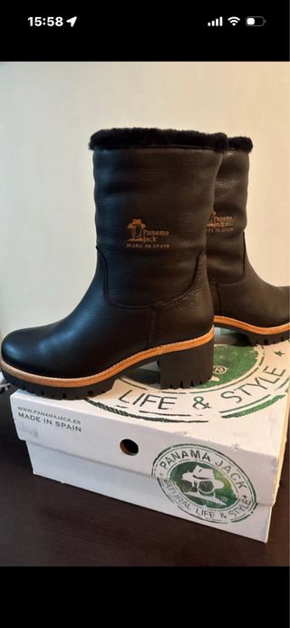 Botines de la marca Panamá, nuevos y con un cálido forro interior. - Color negro. - Fabricados en España. - Suela con diseño de taco y detalle de madera. el numero es 37 pero yo uso 38 y dan mucha talla es un 38. estás forradas hasta la planta del pie, cuero y forro negro, en su caja y con su bolsa. nuevas,