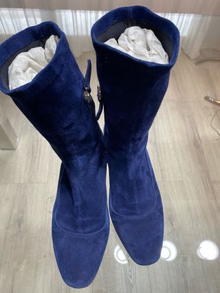 Botines de ante en color azul. - Material: Ante - Color: Azul - Cierre de cremallera lateral