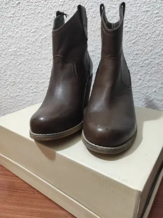 Botines de color marrón, estilo cowboy/western, muy versátiles para otoño e invierno. Diseño elegante con tacón muy cómodo, ideales tanto para diario y estilo más formal. En muy buen estado