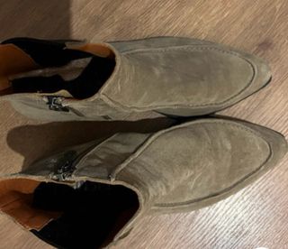 Botas en color verde militar súper cómodas y fácil de conjuntar con casi cualquier look. Están en buen estado, únicamente la parte delantera un pelín rozada, como se ve en la foto.