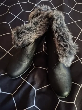 Botines elegantes con un toque acogedor. - Diseño de caña media. - Detalle de pelo sintético en la parte superior. - Cierre lateral discreto.