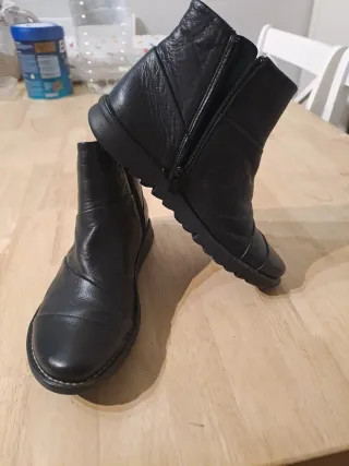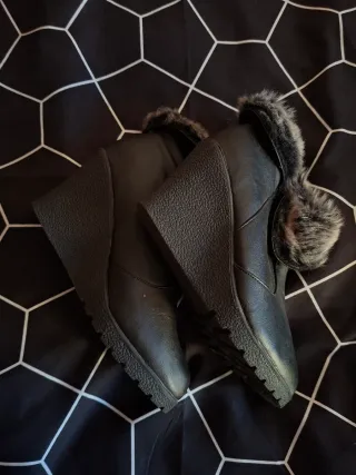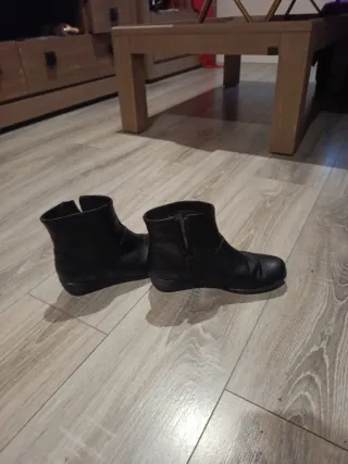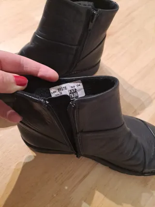 Botines de piel negras con forro interior suave. - Cierre de velcro. - Suela de goma. - Diseño clásico y cómodo. Tacon cuña 5 cms.
