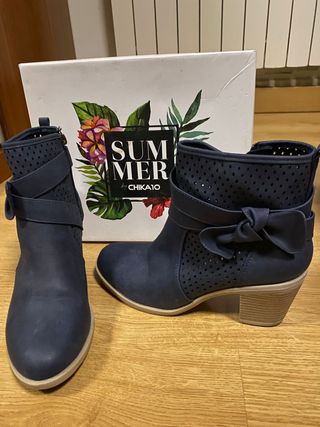 Botines de tacón con un bonito detalle de lazo. - Diseño con perforaciones. - Tacón de madera. - Cierre de cremallera.