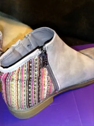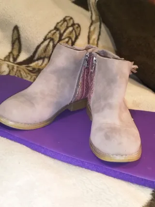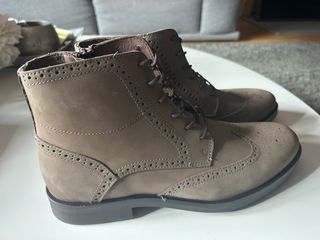 Botines de piel natural de Calvin Klein. Diseño tipo chelsea. Tacón grueso y plataforma, son muy cómodos. Material exterior de ante. Usados muy pocos meses, ya que su dueña creció rápidamente y se le quedaron pequeños pronto. un calzado de muy buena calidad que a un precio genial. Aprovecha esta oportunidad!