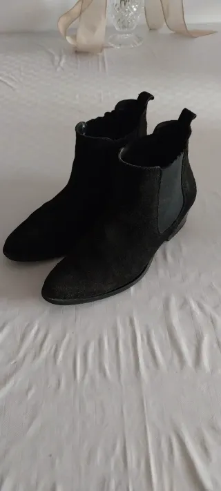 Botines de ante con un diseño moderno y elegante. - Material exterior de ante. - Tacón grueso para mayor comodidad. - Detalle elástico lateral.