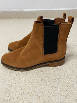 Botines de ante Clarks en color marrón. - Material exterior de ante. - Diseño tipo Chelsea con elásticos laterales. - Suela de goma. - Talla 39.