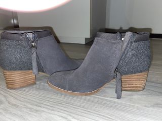 Botin de ante imitación doble.caña tobilleras cremallera lateral y tacon forrado igual que el botín.suela y tacon reforzados recién arreglados