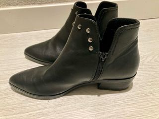 Botines de la marca Algo Bonito en talla 36. Un calzado versátil y con estilo. - Diseño con tachuelas metálicas. - Apertura lateral con cremallera. - Corte moderno en V en la parte superior.