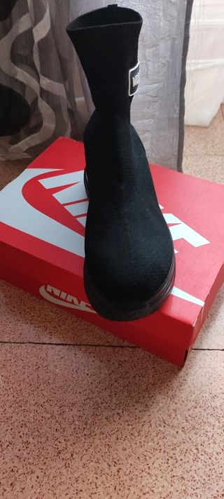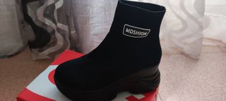 Botines de plataforma negros, talla 40. Ideales para darle un toque elegante a cualquier look. - Material tipo ante. - Tacón grueso y cómodo. - Diseño de caña alta.nuevos valorados en 35€