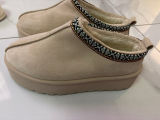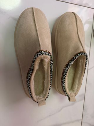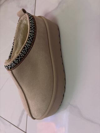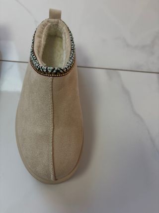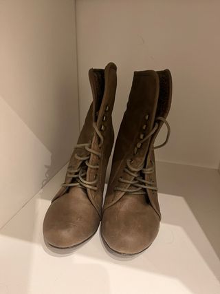 Botines de ante color beige de la marca Stradivarius. Son de tacón y tienen un diseño de cuerda trenzada en la parte superior. Ideales para un look casual y elegante. - Material: Ante. - Diseño: Con cuerda trenzada. - Tacón alto.10,5*2cm, plataforma 2 cm Ancho caña 18*23*14