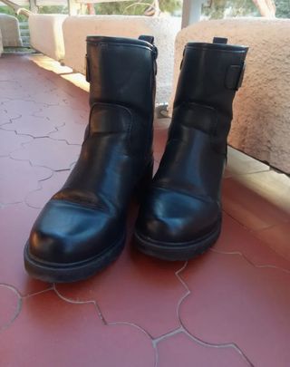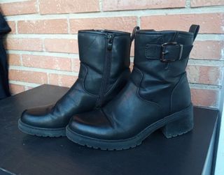 Botines de cuero negros. perfectos para el día a día. Cierre con cremallera lateral. Detalle de hebilla en la parte superior. Suela de goma resistente. Da bastante talla, sería un 39-40 - Material: Cuero. - Color: Negro.