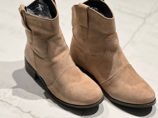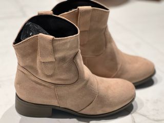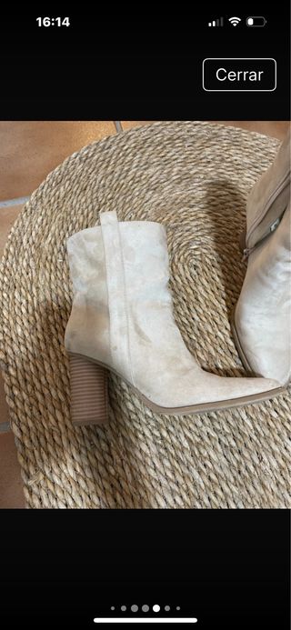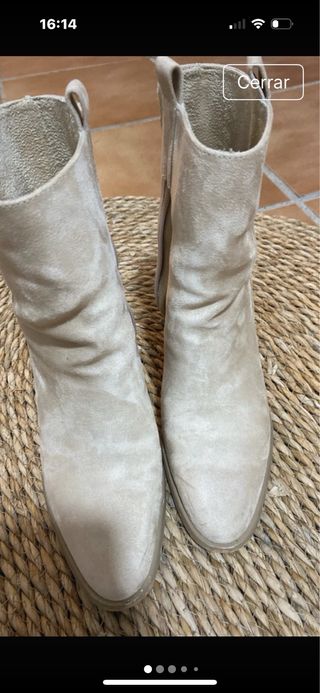 Botines de estilo casual en color beige. - Tacón grueso y cuadrado. - Punta afilada. - Material tipo ante.