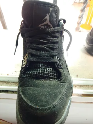 Botines Jordan 4 en color negro. - Diseño icónico. - Logo Jumpman plateado en el talón.