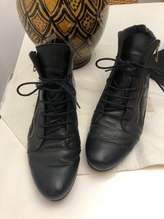 botin talla 38 negro con cremallera lateral interior y hebilla dorada. poco uso algunas marcas