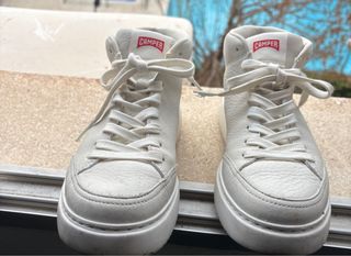 Botines de mujer de la marca Camper en color blanco. Un calzado cómodo y con estilo. - Diseño de botín. - Cierre con cordones. - Detalle de logo en la lengüeta.