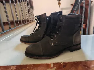 Botines de serraje en color marrón con cordones. Talla 43. Usados solo dos horas. Me los he comprado pequeños y me he dado cuenta tarde. Todavía tiene las pegatinas interiores puestas. Adjunto documento de compra.