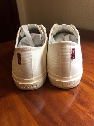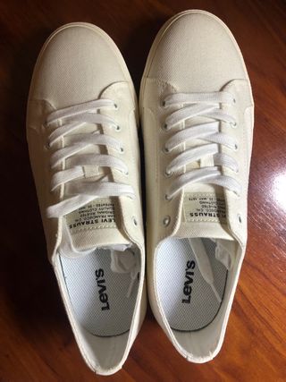 Botines casuales de lona color beige/ blanco, 100% original, NO bajo precio ni cambios. - Marca Levi's. - Cordones blancos. - Suela de goma. - Detalle de logo en la plantilla y etiqueta.
