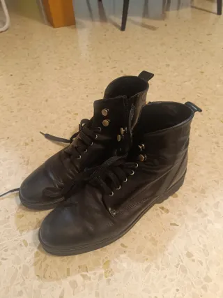 Botines de Zara con un diseño moderno y elegante. - Tacón de cuña. - Cierre de cordones. - Detalle elástico en el tobillo. dan una talla muy justa