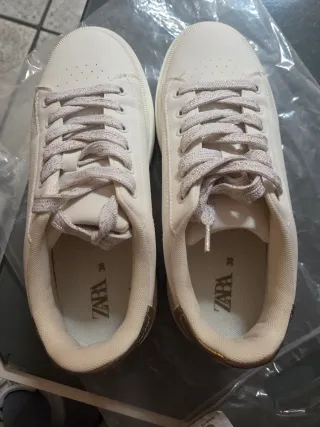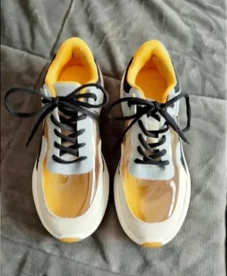 Zapatillas deportivas en muy buen estado de Zara Woman, con partes transparentes y suela de plataforma. Aproximadamente un 39/40. Medidas en fotos.