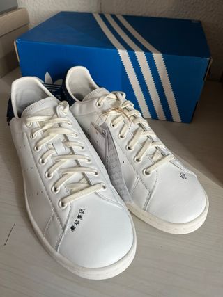 Botines Adidas Stan Smith con un diseño único. - Detalle de abalorios y flecos en el talón. - Color blanco con detalles en azul.