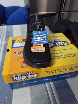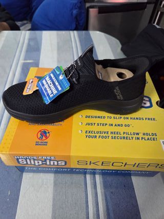Botines Skechers negros, sin estrenar. - Diseño Hands Free Slip-ins para ponerlos sin usar las manos. - Tecnología Heel Pillow que sujeta el pie. - Lavables a máquina. - Transpirables.