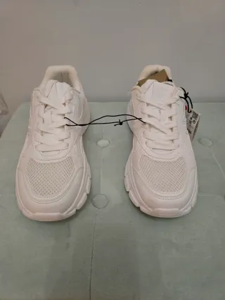 Zapatillas deportivas blancas del número 38. Nuevas. Le faltan las plantillas. Medidas en fotos.