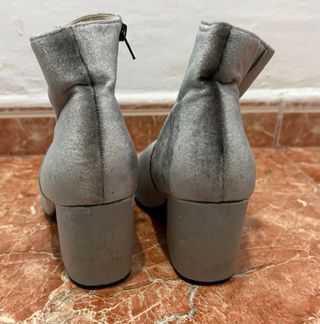 Botines grises con un toque brillante de Primark. Cuentan con cremallera lateral para facilitar su uso. - Detalle de flecos en la cremallera. - Diseño moderno y versátil.