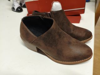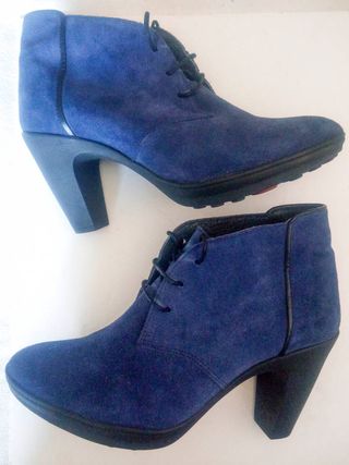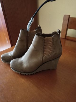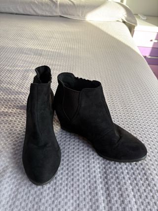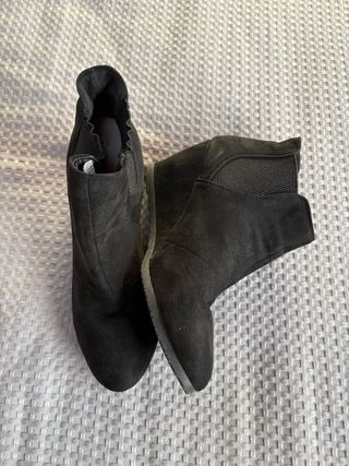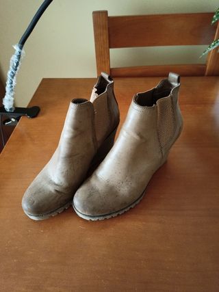 La suela de uno de ellos está bastante desgastada por dentro. Por lo demás bastante bien. Botines de cuña con acabado en ante. - Diseño tipo chelsea. - Elástico lateral. - Suela de goma. - Tacón de cuña.