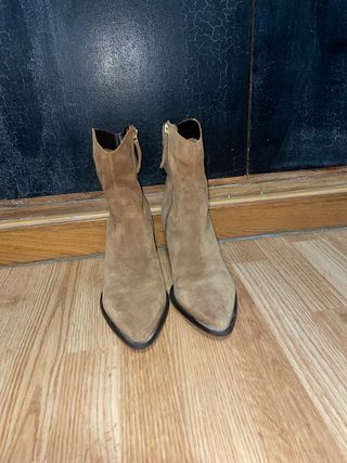 Botines de tacón, color marrón claro. 8,5 cm de tacón. 40 de pie. Compradas en la tienda MANGO.