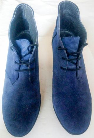Botines de ante azul de la marca EVA GONZÁLEZ. - Diseño tipo botín. - Material exterior de ante. REGALO: Blusa, Jersey, Foulard, Camisa, Camiseta, Sueter, Vestido, etc. (Dependiendo de Existencias) // DESCUENTO: Haciendo LOTE Con Otro-s Artículo-s (Incluso de Bajo Coste)