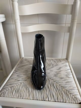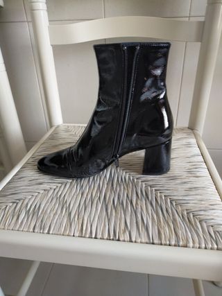 Botines de charol con tacón. - Material: Charol. - Cierre de cremallera lateral.