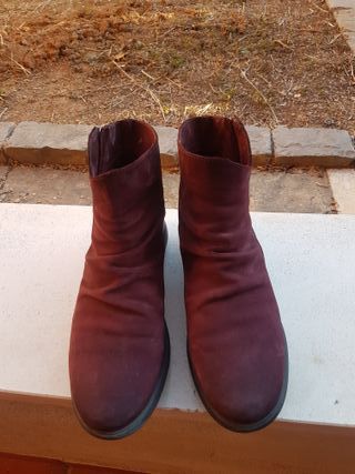 Botines PAULA URBAN de color vino número 39 (no existe ese color en el desplegable; por eso figura como marrón pero son de color burdeos-vino). En Buen estado. Muy cómodas y estilosas. Efecto doblado en los tobillos. Las retiro porque sólo puedo llevar deportivas. Precio original alrededor de 90 euros . Se venden por 20 euros, precio cerrado. El color es granate-vino pero el sistema sólo me da opción al marrón.