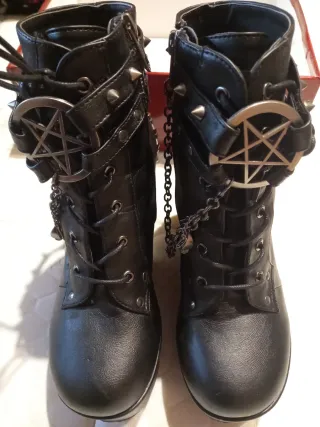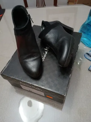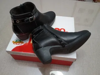 Como nuevos usados muy pocas veces. Zapato cerrado estilo botín por debajo del tobillo, con cremallera lateral, de cuero negro, con tacon alto de 10ctm más o menos, pero muy cómodos. Marca Mustang Numero 38