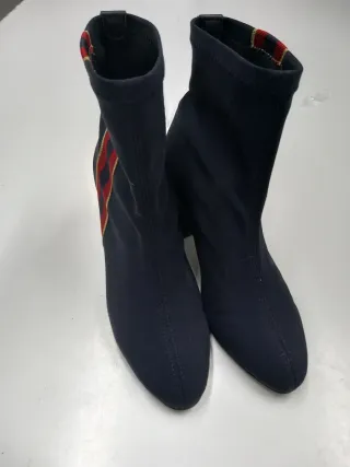 Usadas en 2 ocasiones. Están prácticamente nuevas. Botín en negro, tejido ante con detalle trasero en rojo. Por dentro son de terciopelo negro.