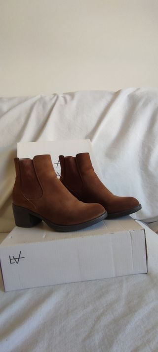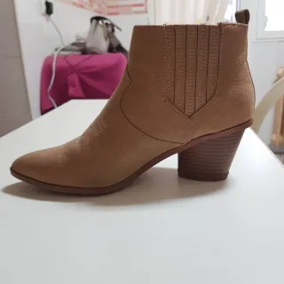 Botines de ante en tono marrón claro. Son ideales para el otoño. Tacon bajo. Nuevos sin estrenar!