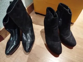 Botines negros de tacón, perfectos para completar cualquier look. - Un par de material exterior de ante y otro símil piel. - Cierre de cremallera lateral. - Tacón grueso para mayor comodidad. Precio por cada par.