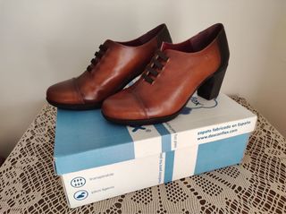 Botines marrones de piel de mujer, número 36. Hechos en España. La altura del tacón es de 4 cm.