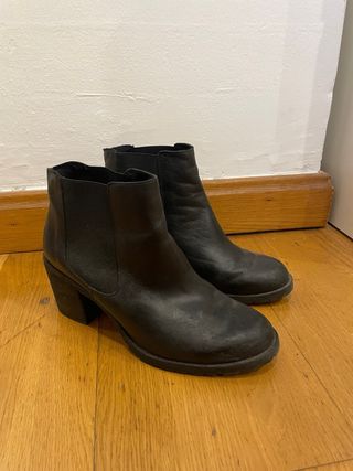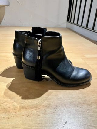 Botines negros de Zara. - Diseño moderno con caña elástica. - Suela gruesa y cómoda. - Detalle metálico en el tacón.