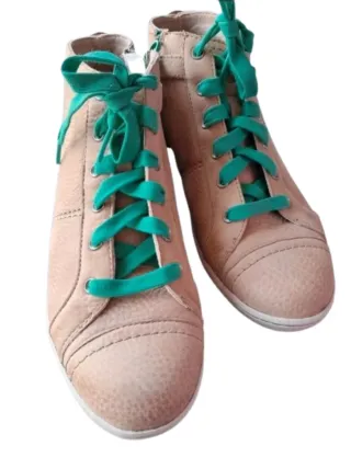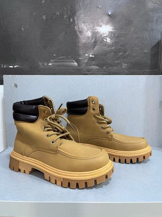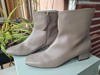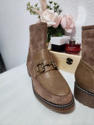 Botines nuevos de piel sintética. - Tallas disponibles: 38-39. - Color: beige y marrón.