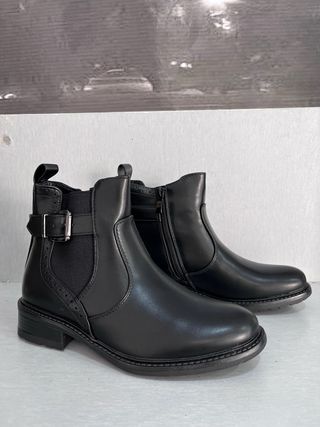 Botines elegantes y modernos disponibles en varias tallas. SOLO ENVÍO - Diseño tipo Chelsea. - Detalle de hebilla. - Acabado en piel sintética. - Suela de goma.