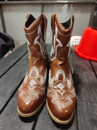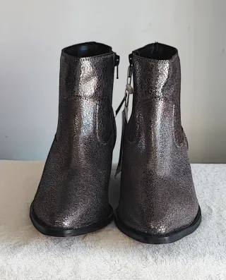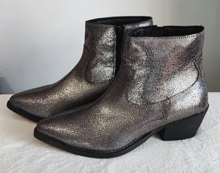 Piel genuina, tacón bajo tipo cowboy, plateado craquelado. A estrenar, cómodo y original 👢✨