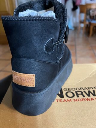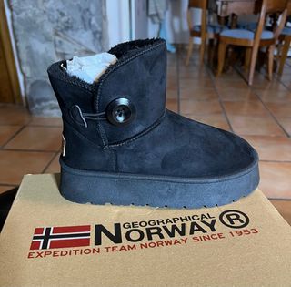 Botines negros de Geographical Norway con un diseño moderno y cómodo. - Exterior de ante sintético. - Detalle de botón grande. - Forro interior de pelo. - Suela gruesa.