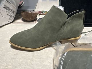 Botines de estilo casual en color kaki, perfectos para el día a día. Cuentan con un diseño moderno y detalles que marcan la diferencia. - Material exterior tipo ante. - Cierre lateral con cremallera dorada. - Adorno de flecos en la cremallera. - Detalle metálico dorado en la suela. - Disponibles en tallas 36,38 y 39.