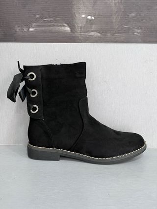Botines de ante sintético en color negro con detalle de lazo en la parte trasera. - Cierre con ojales y cordones. - Diseño moderno y elegante.
