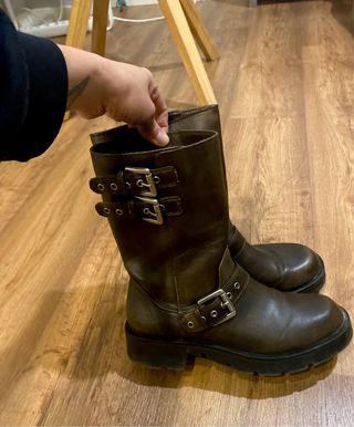 Botines de estilo motero de la marca Zara. - Como Nuevos. - Diseño de caña media. - Cierre con hebillas metálicas. - Detalle de correas. - Suela gruesa.