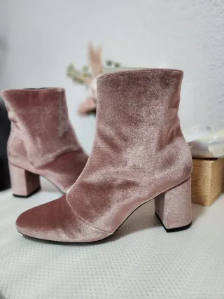 Elegantes botines de terciopelo con un diseño moderno. El interior forrado completamente en piel .Tacón 7 cm Nuevos a estrenar - Material: Terciopelo. - Tacón grueso. - Punta fina.