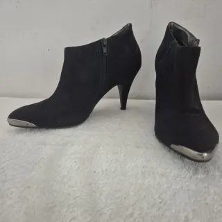 Botines de ante en color negro con detalles metal plateados en la punta. Cierre de cremallera .Marca Yessica 39 SIN ESTRENAR