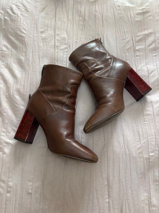 Botines serraje tacón marrón talla 36 tacón 7.5cm