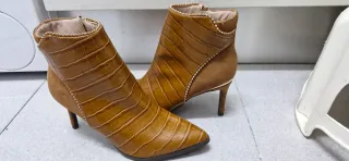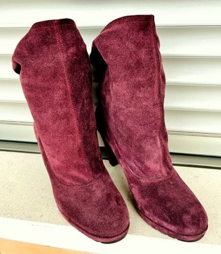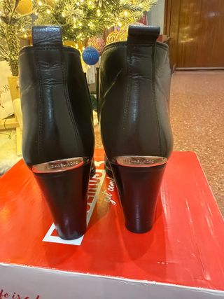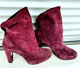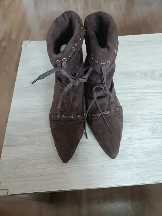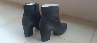 Botines de tacón de ante sintético. Tienen una pequeña marca en la parte de detras del tacon. - Tacón fino. - Cierre con cremallera lateral.